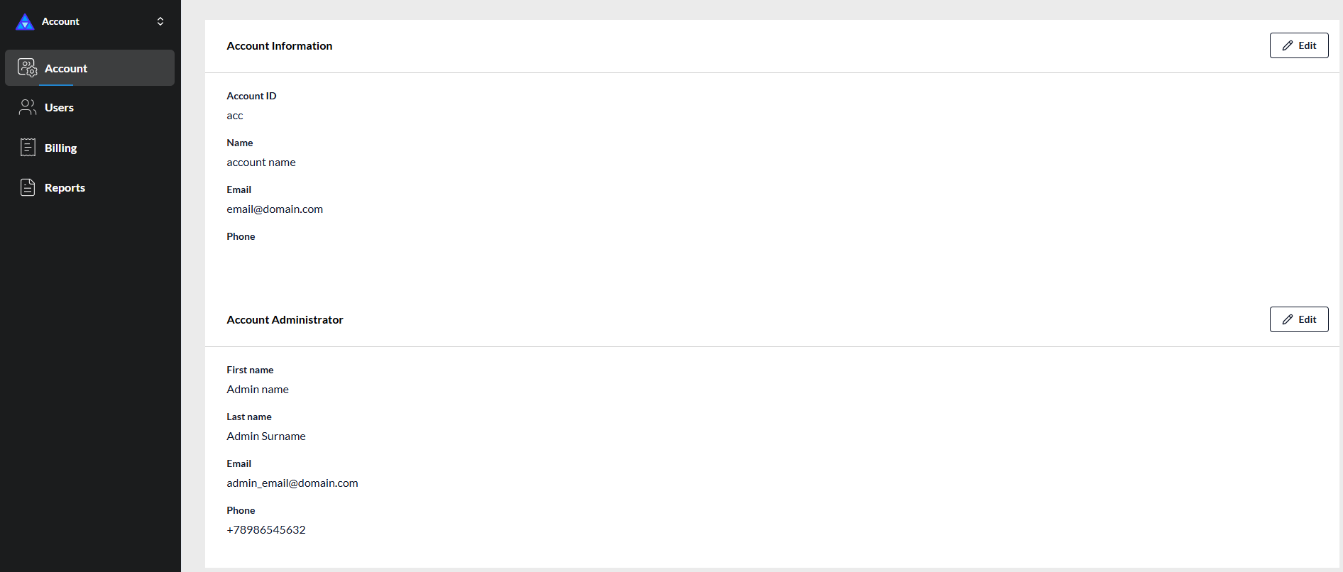 Responsible for account settings and user actions, ensuring security, but cannot manage billing. | All objects in Accounts are visible, except Billing settings. |