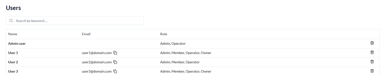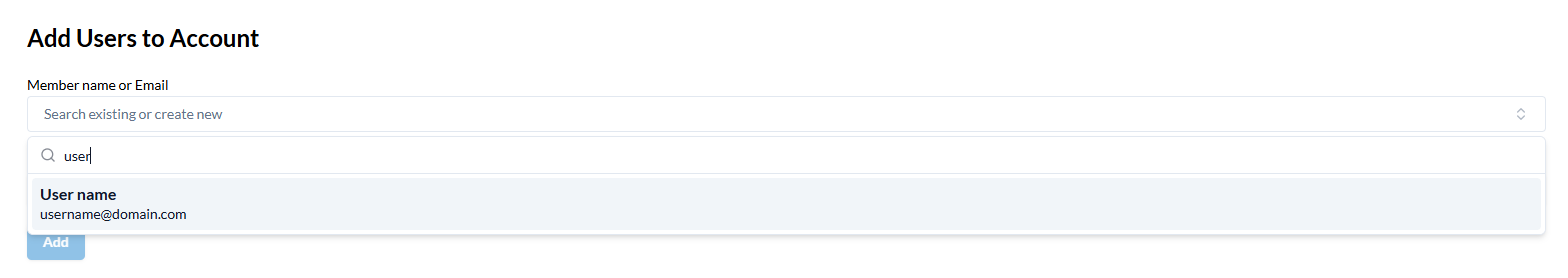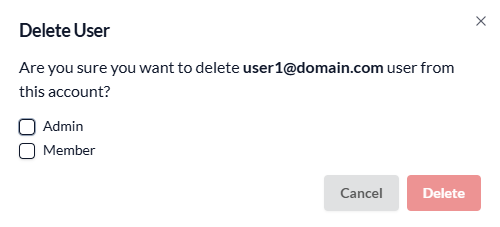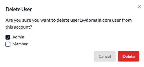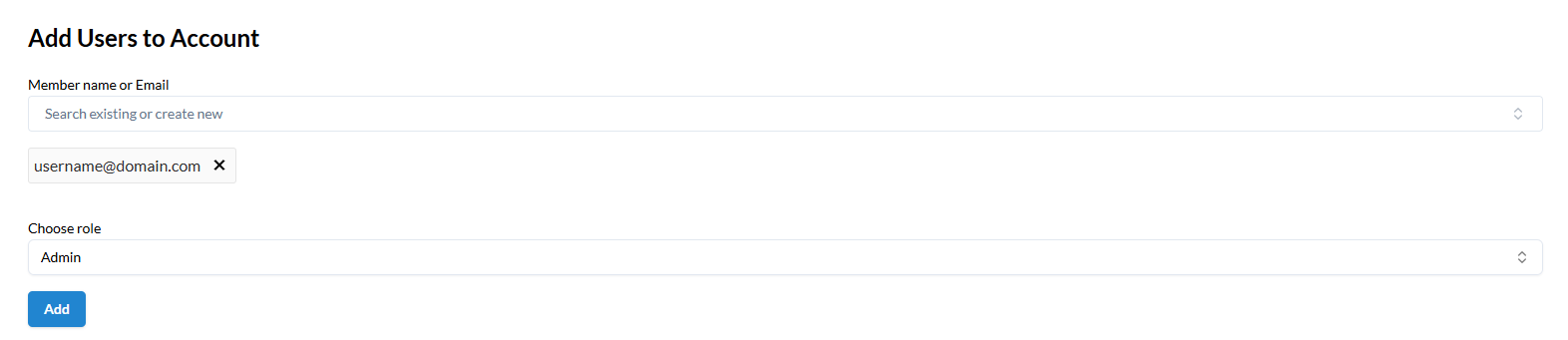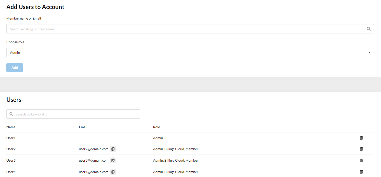 On the Users tab, the admin can add users in the account. It may be an existing user or the admin can create a new one by filling out a form. The admin can assign a role (it's possible to give more than one role) to a user and also delete a user or their role.