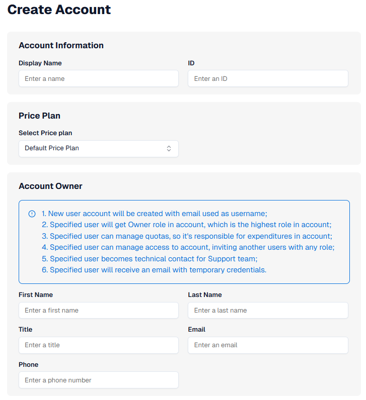 • The Account Owner has the authority to manage quotas and is therefore responsible for all expenditures associated with the account.