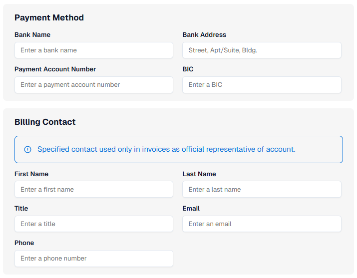 The specified contact is used only for invoicing purposes as the official representative of the account.