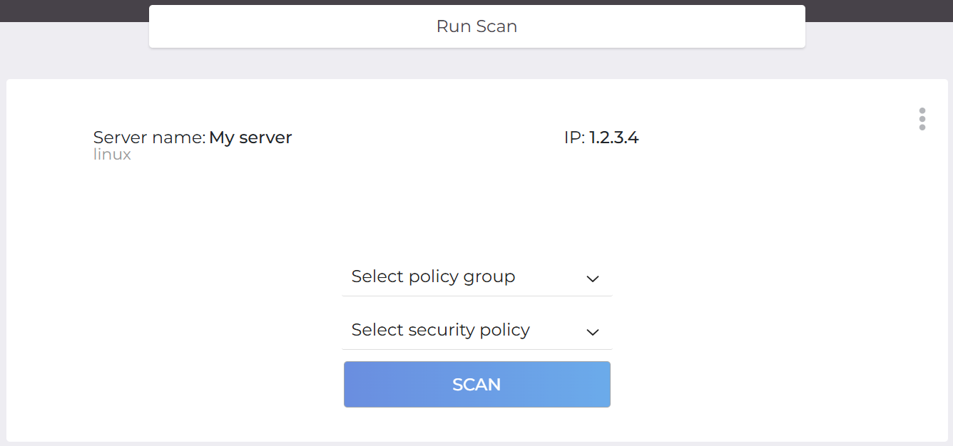 The server's check can be initiated from the Servers tab by clicking the Scan button on the server's thumbnail.