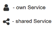 The icon next to the service owner indicates whether the service belongs to the current user or is shared by another one.