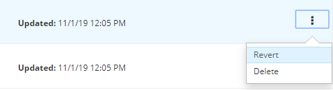 To restore from a snapshot, select the required snapshot in the list and press Revert in the dropdown menu in order to start restoring.
