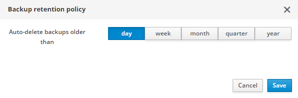 Use the Auto-delete backups older than button to change backup retention policy.