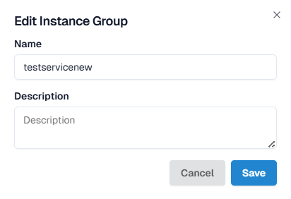 To change the name or description of an instance group, select Edit Name & Description from the context menu. In the modal window, make the required changes: