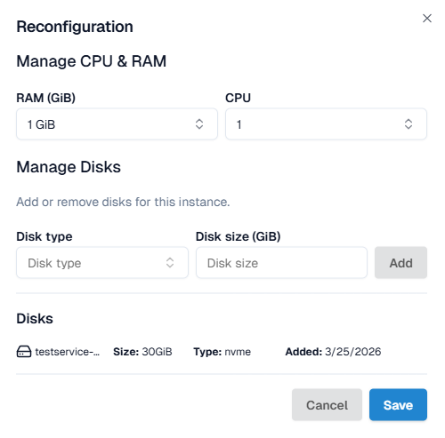 In the modal window, specify the new VM parameters: