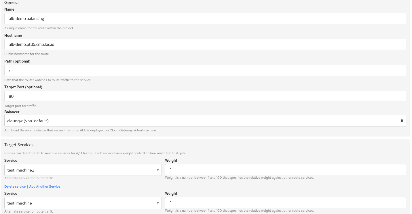 Target services, in theWeightfields, you need to specify in what proportions the traffic will be divided between the services (in this case, 1 to 1). Thus, you can divide the traffic between a large number of services.