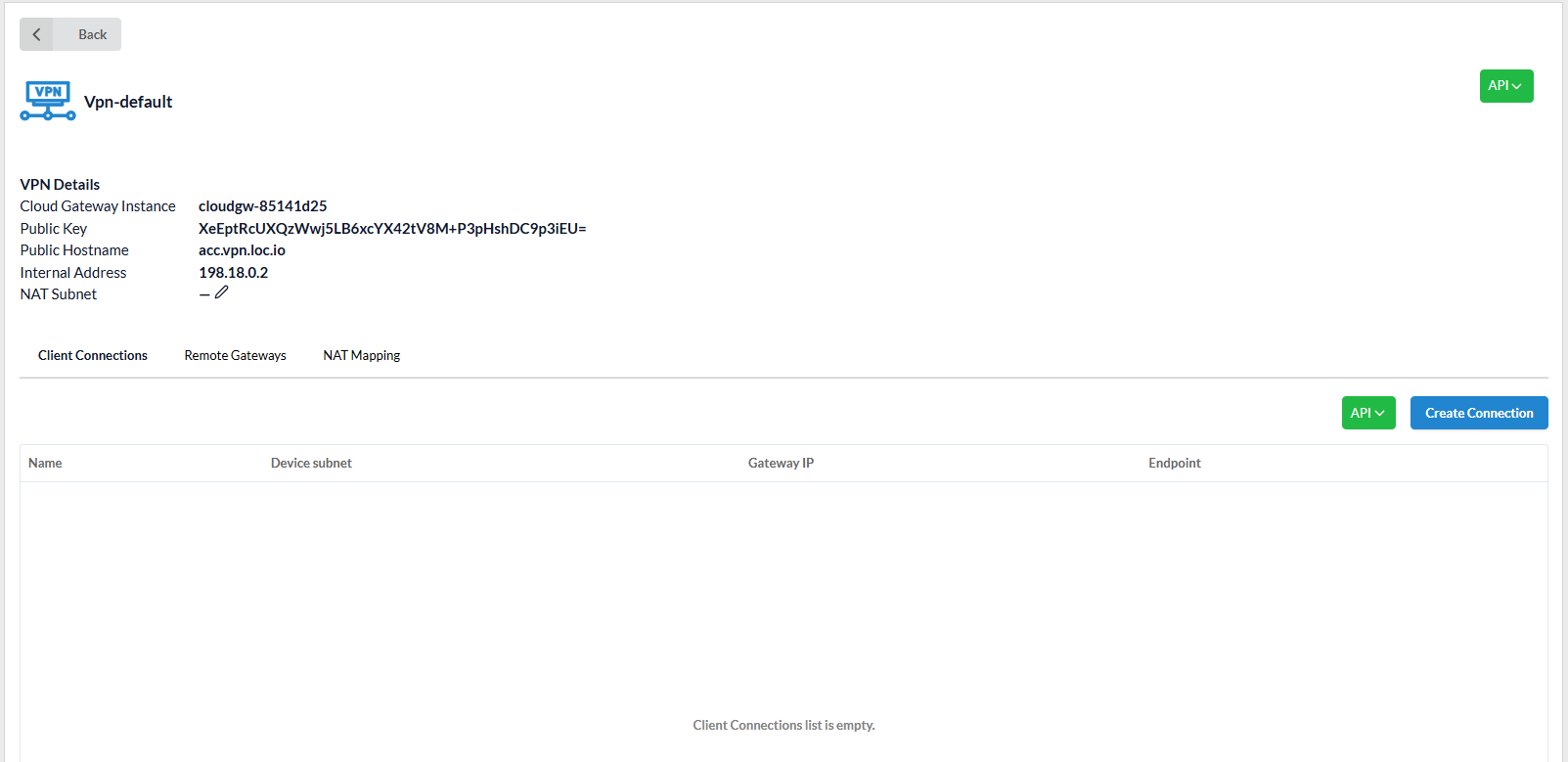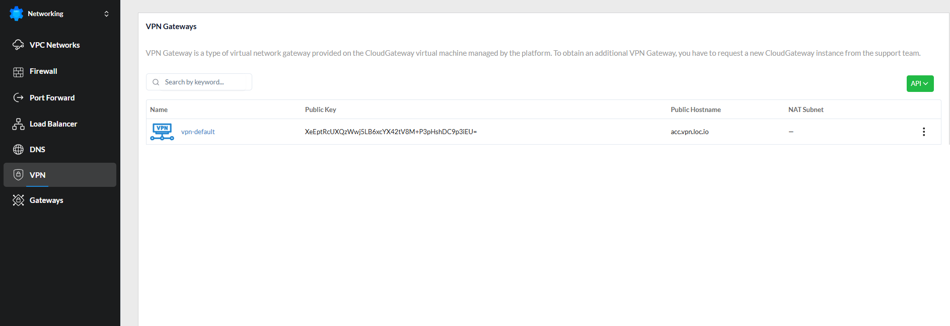 After registering an account in the VPN service, one VPN Gateway is created by default.