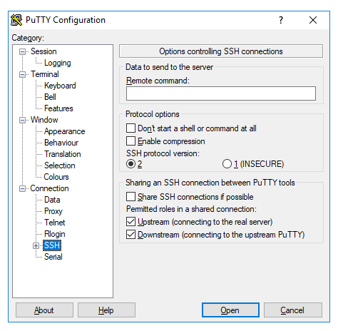 После этого нажмите на SSH в меню слева и убедитесь, что для версии протокола SSH выбрано 2.