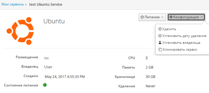 Для передачи сервиса необходимо найти его на странице Мои сервисы, открыть выпадающее меню кнопкой ⋮ и выбрать опцию Установить владельца либо найти эту кнопку на странице сервиса в меню Конфигурация: