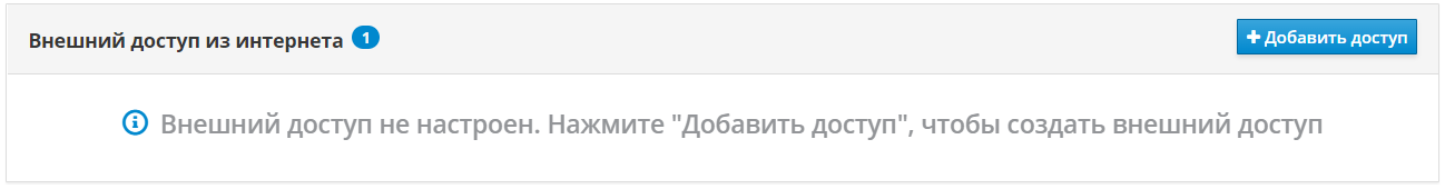 На данной странице пользователь может настроить внешний доступ к сервису из сети Интернет. Чтобы начать, нажмите кнопку Добавить доступ
