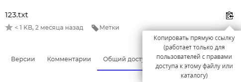 Нажатием на кнопку можно быстро скопировать в буфер обмена ссылку на файл или папку (работает только для тех, у кого есть доступ к этому файлу или папке).