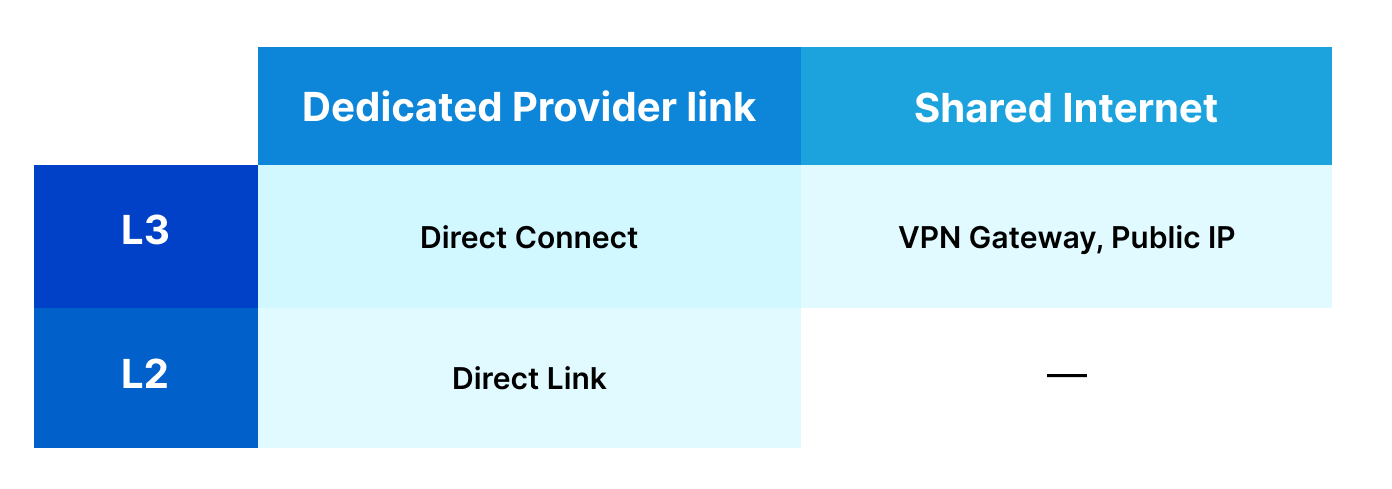 - Direct Link и Direct Connect — это решения для глубокой и профессиональной интеграции с облаком через выделенные каналы.